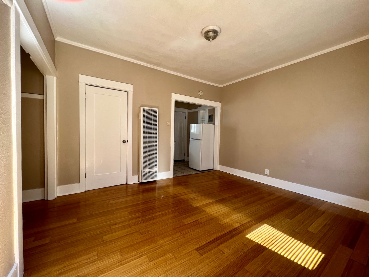 This quaint downtown Long Beach studio apartment includes two tone paint, large closet, stove, kitchen cabinets, hardwood floors and ceramic tile flooring. Property includes common area laundry room and patio area. Street parking only. Landlord pays for water and hot water.